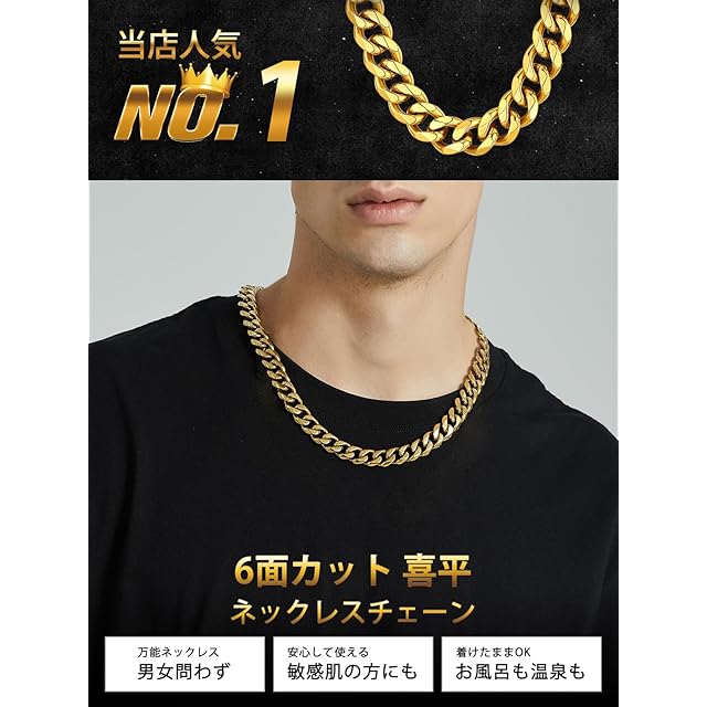 商品名:《新品未開封》[ChainsHouse] ネックレス メンズ チェーンのみ サージカルステンレス 喜平 ゴールド k18 金属アレルギー 46cm 12mm アクセサリー
