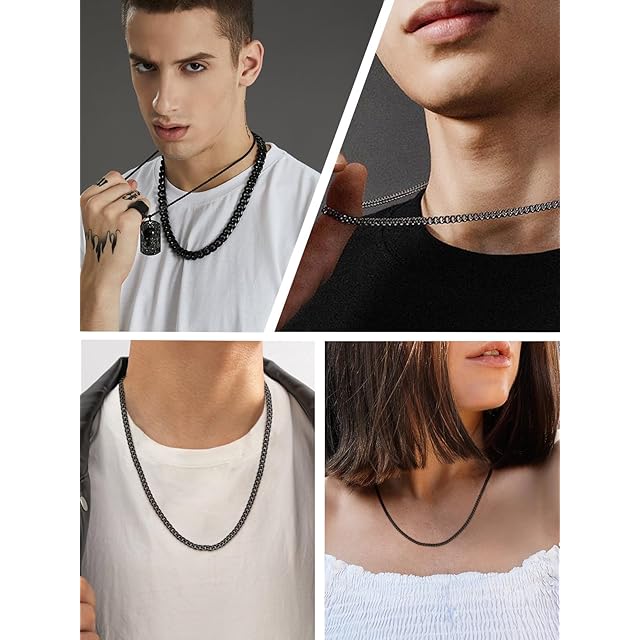 《新品未開封》[ChainsHouse] ネックレス メンズ チェーンのみ サージカルステンレス 喜平 金属アレルギー ブラック 黒 71cm 9mm アクセサリー