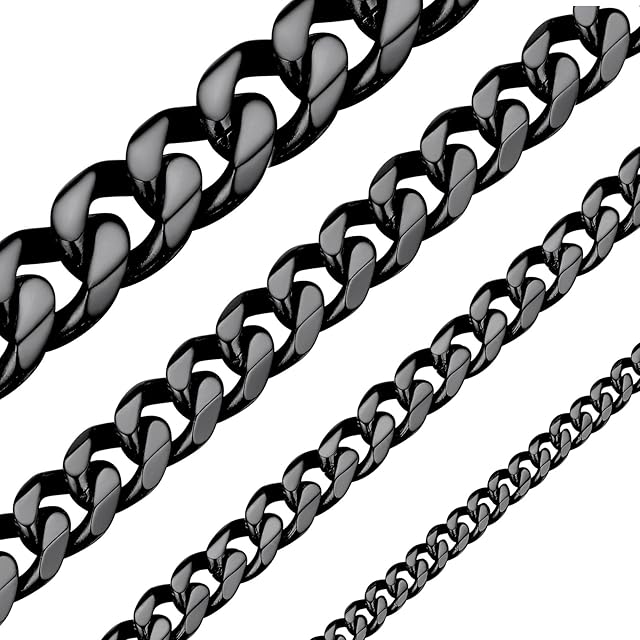 《新品未開封》[ChainsHouse] ネックレス メンズ チェーンのみ サージカルステンレス 喜平 金属アレルギー ブラック 黒 61cm 9mm アクセサリー
