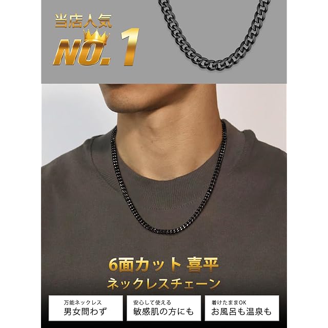 商品名:《新品未開封》[ChainsHouse] ネックレス メンズ チェーンのみ サージカルステンレス 喜平 金属アレルギー ブラック 黒 56cm 6mm アクセサリー