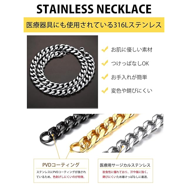 【ステンレスネックレス】地金はステンレスを採用。「錆びにくい」「アレルギー反応を起こしにくい」ので、お肌に優しい素材として人気です。