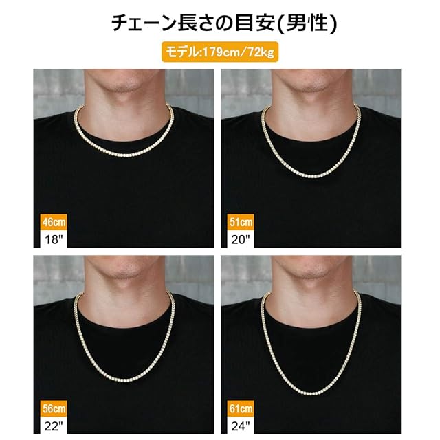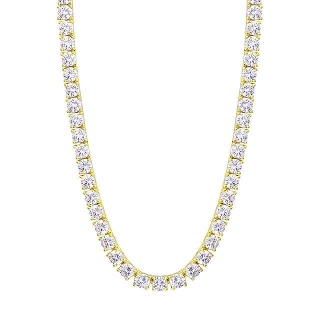 《新品未開封》KRKC&CO テニスチェーン テニスネックレス 幅4mm CZダイヤ 14Kゴールドメッキ メンズ レディース チェーンネックレス ジルコニア ヒップホップ ジュエリー ブリンブリン B系 ストリート系 アクセサリー (46, 4mm-イエローゴールド)
