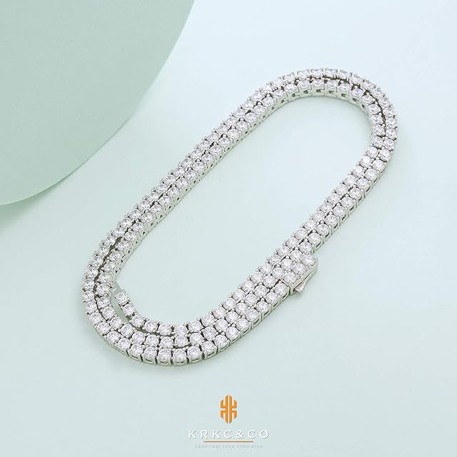 《新品未開封》KRKC&CO テニスチェーン テニスネックレス 幅3mm CZダイヤ ホワイトゴールドメッキ レディース チェーンネックレス ジルコニア ヒップホップ ジュエリー ブリンブリン B系 ストリート系 アクセサリー (61, 3mm-ホワイトゴールド)