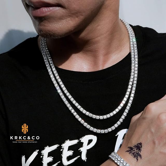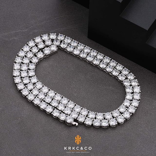 《新品未開封》KRKC&CO テニスチェーン テニスネックレス 幅5mm CZダイヤ ホワイトゴールドメッキ レディース チェーンネックレス ジルコニア ヒップホップ ジュエリー ブリンブリン B系 ストリート系 アクセサリー (56, 5mm-ホワイトゴールド)