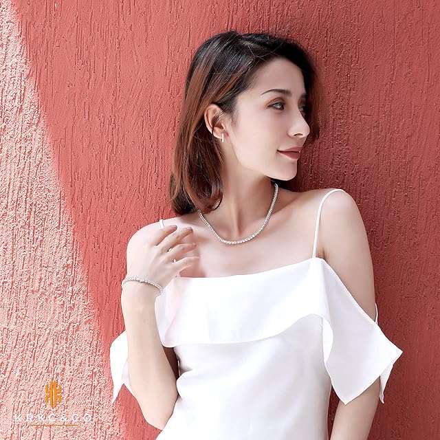《新品未開封》KRKC&CO テニスチェーン テニスネックレス 幅3mm CZダイヤ ホワイトゴールドメッキ レディース チェーンネックレス ジルコニア ヒップホップ ジュエリー ブリンブリン B系 ストリート アクセサリー (46, 3mm-ホワイトゴールド)