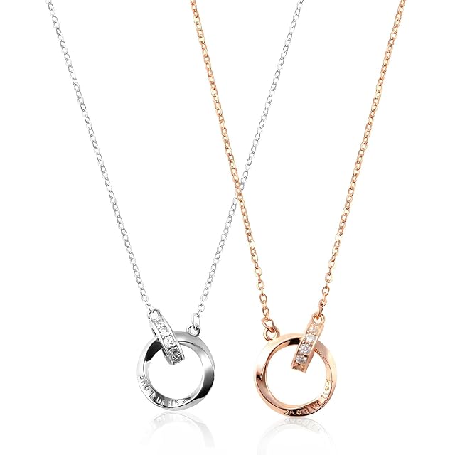 《新品未開封》[Nicoiro] ペアネックレス 肌に優しい素材を採用 ペアルック カップル お揃い ネックレス プレゼント S925 (Fall In Loveの刻印あり - シルバー×ピンクゴールド)