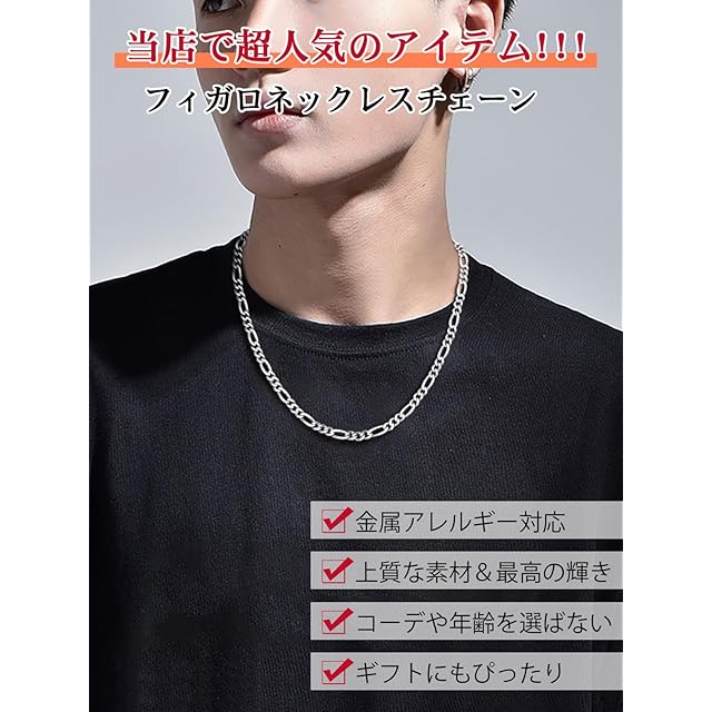 商品名:《新品未開封》[Silvora] シルバー925 ネックレス メンズ チェーンのみ 金属アレルギー レディース フィガロチェーン 70cm 幅5mm アクセサリー