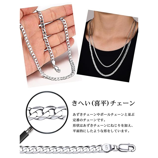 商品名:《新品未開封》[Silvora] シルバー925 ネックレス メンズ チェーンのみ 喜平 金属アレルギー チェーンネックレス レディース 50cm 幅3mm アクセサリー
