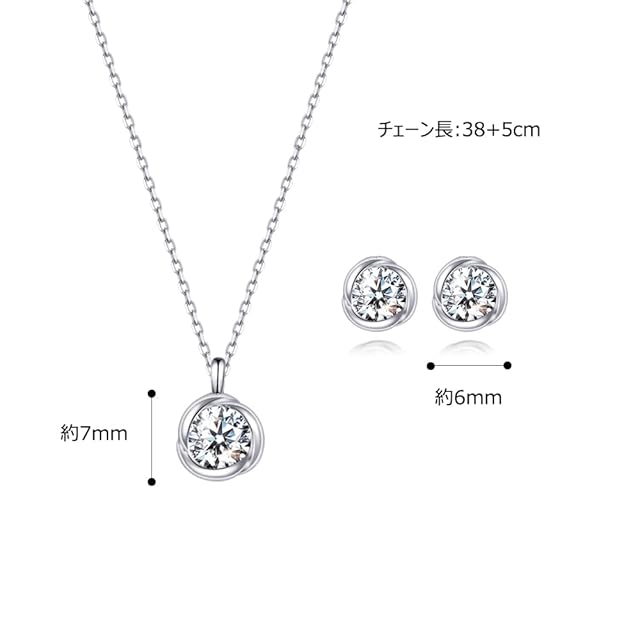 製品仕様:ペンダントサイズ: 横 7mm* 縦 7mm。 ネックレス チェーン:38+5cm 長さ調整可能 。ピアスサイズ: 横 6mm× 縦 6mm。素材:5A ジルコニア、シルバー925。ペンダントストーンサイズは:約0.50カラット、ピアスストーンサイズは:約0.25カラット/個。付属品:パッケージケース、ベロアポーチ、専用磨きクロス、純銀キャッチとシリコンキャッチ