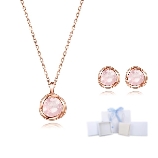 ロマンチックなピンク:天然ローズクォーツを使用したペンダントセットは、ピンクのバラをデザインテーマにロマンチックな雰囲気を演出しており、「愛する彼女にピンクのバラを贈る」という意味で、今女性に人気のジュエリーアクセサリーとなっています