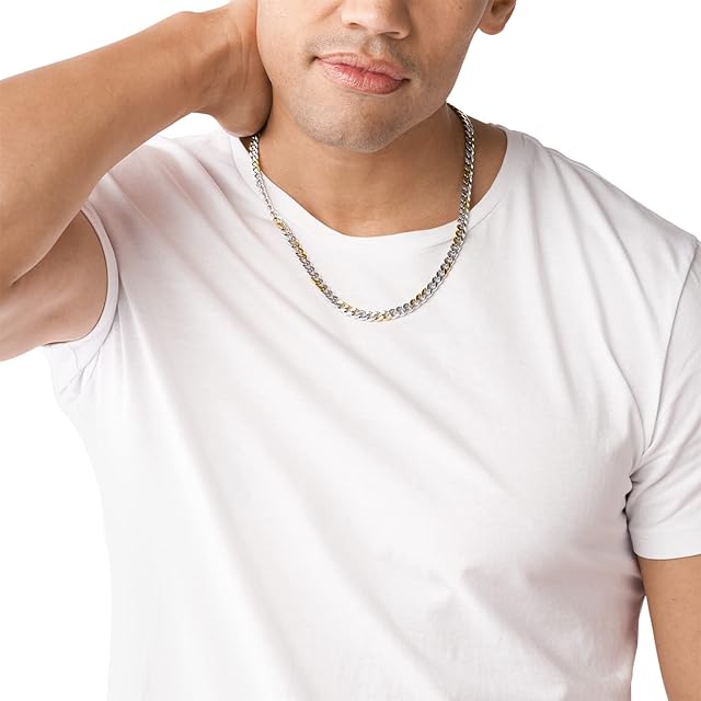 光沢仕上げのシルバーとゴールド調のステンレススチール製チェーンネックレス、ゴールドDロゴコイン付き。ロブスタークラスプ留め具。