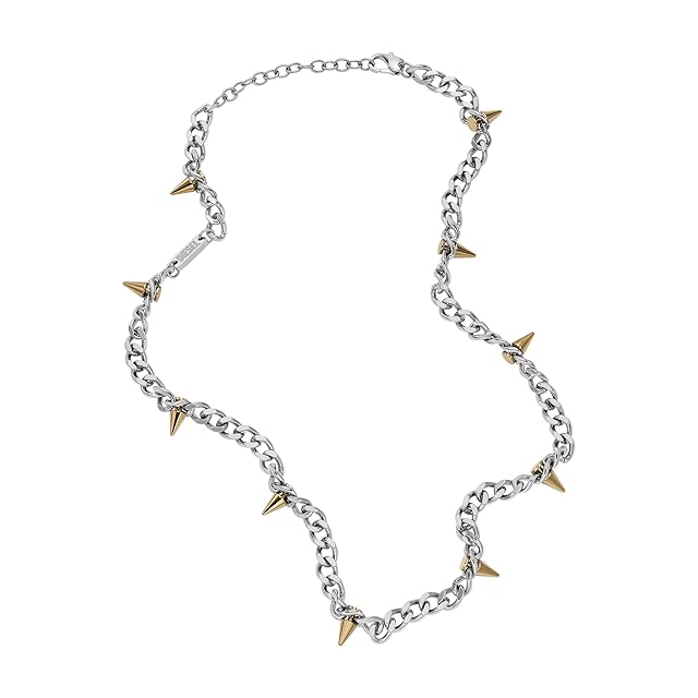 Dieselのチェーンネックレスは、ツートンカラーのステンレススチールとロブスタークラスプクロージャーが特徴です。