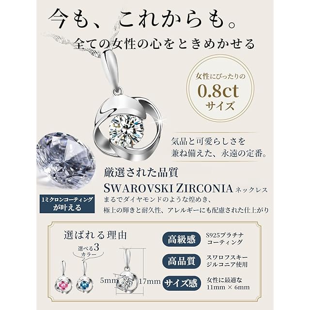 【素材】スワロフスキージルコニア / シルバー925 / 日本製品質 本体は925スターリングシルバーを採用。美しい輝きを長く楽しめるレディースネックレス。高級感あふれるスワロフスキー ジルコニアをあしらい、特別なプレゼントとしても喜ばれます。