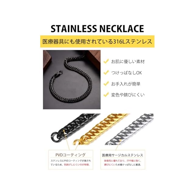 商品名:《新品未開封》[ChainsHouse] 喜平 ネックレス メンズ チェーンのみ 黒 ブラック サージカルステンレス 錆びない 長さ46cm 幅6mm