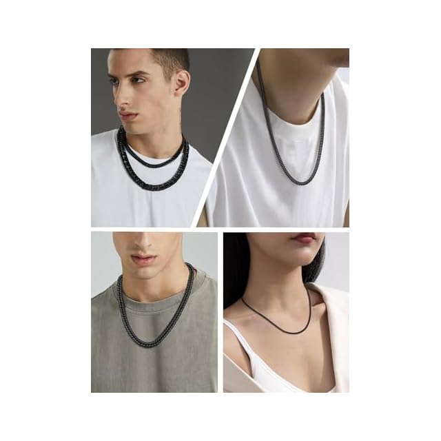 《新品未開封》[ChainsHouse] 喜平 ネックレス メンズ チェーンのみ 黒 ブラック サージカルステンレス 錆びない 長さ46cm 幅12mm