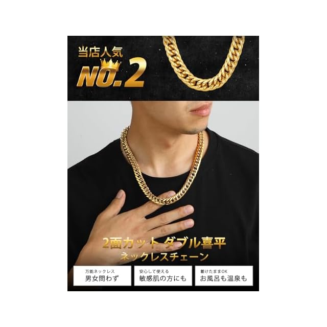 【ダブル喜平ネックレス】シンプルなデザインでカジュアル、ストリート、韓国ファッションとどんなコーデにも取り入れやすい喜平チェーンネックレス。上品に光を反射するスクエアカットで表面をカットし、胸元であなたのこだわりが光り輝く。