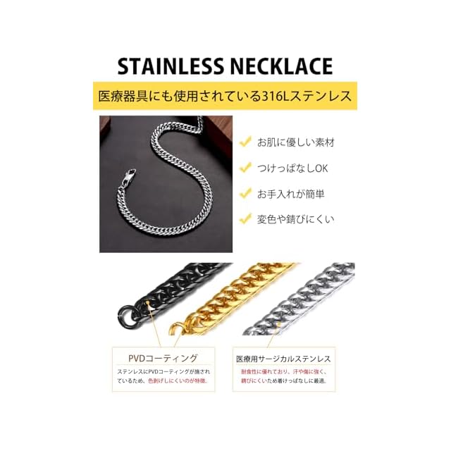 【ステンレスネックレス】地金はステンレスを採用。「錆びにくい」「アレルギー反応を起こしにくい」ので、お肌に優しい素材として人気です。