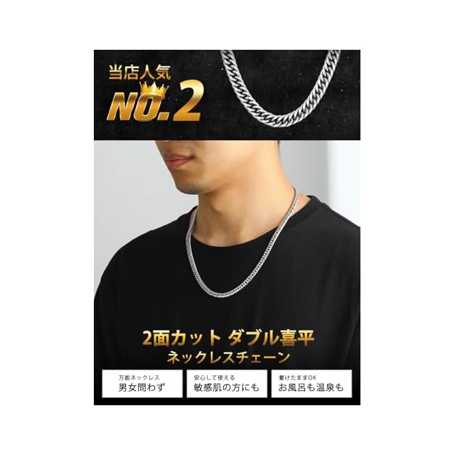 【ダブル喜平ネックレス】シンプルなデザインでカジュアル、ストリート、韓国ファッションとどんなコーデにも取り入れやすい喜平チェーンネックレス。上品に光を反射するスクエアカットで表面をカットし、胸元であなたのこだわりが光り輝く。