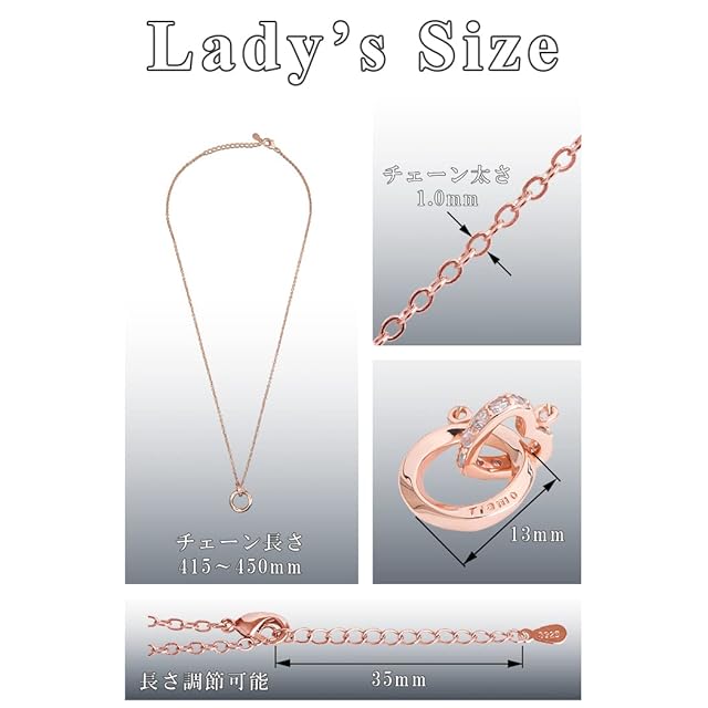 【商品仕様 レディース】ピンクゴールド&ホワイトジルコニア、ネックレス最大長さ450mm、チェーン太さ1.0mm