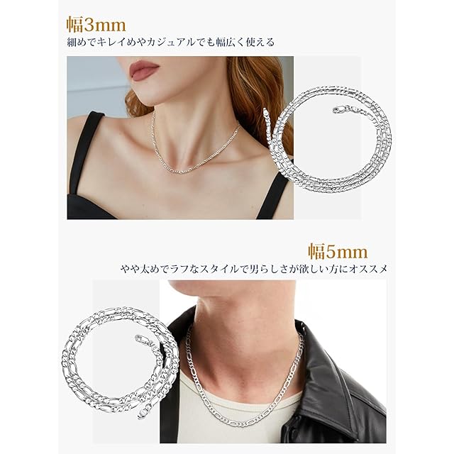 《新品未開封》[Suplight] シルバー925 ネックレス メンズ チェーンのみ レディース フィガロチェーン 60センチ 3ミリ アクセサリー
