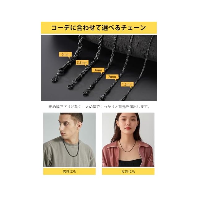 商品名:《新品未開封》[ChainsHouse] ネックレス レディース チェーンのみ ステンレス メンズ フレンチロープチェーン 黒 ブラック 65センチ 2ミリ アクセサリー