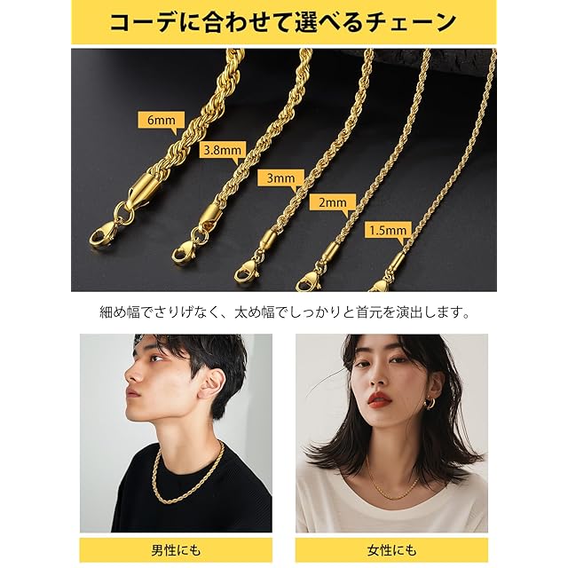 《新品未開封》[ChainsHouse] ネックレス メンズ チェーンのみ ステンレス フレンチロープチェーン ゴールド k18金 65センチ 3ミリ レディース アクセサリー