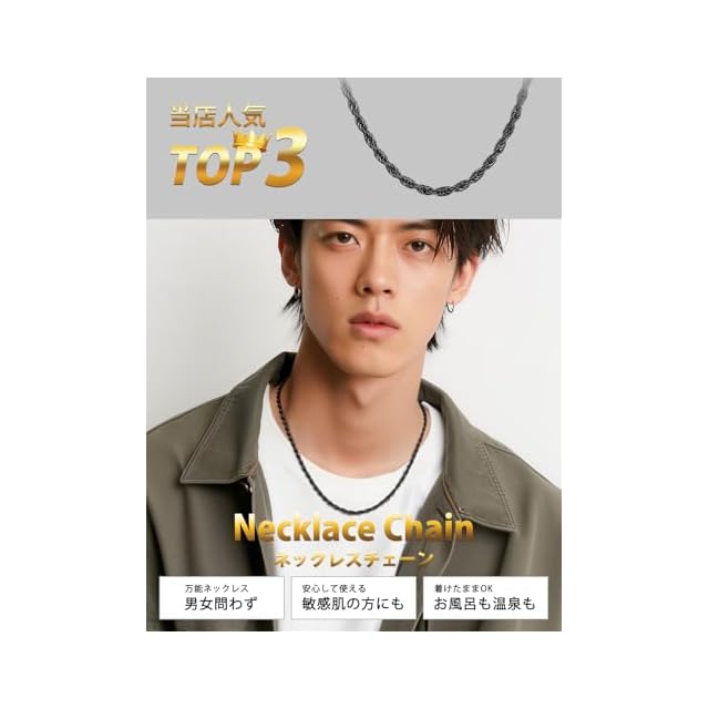 《新品未開封》[ChainsHouse] ネックレス メンズ チェーンのみ ステンレス フレンチロープチェーン 黒 ブラック 70センチ 3ミリ レディース アクセサリー