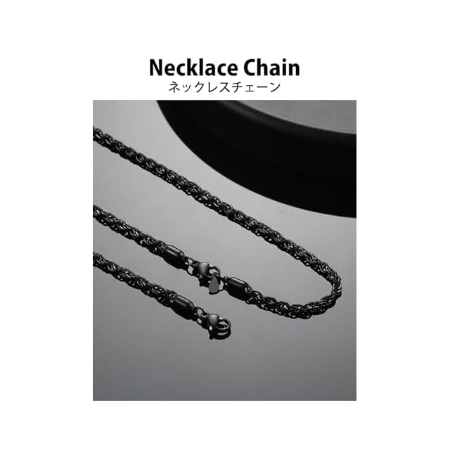 商品名:《新品未開封》[ChainsHouse] ネックレス メンズ チェーンのみ ステンレス フレンチロープチェーン 黒 ブラック 60センチ 3ミリ レディース アクセサリー