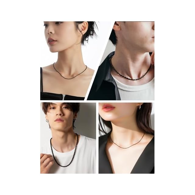 《新品未開封》[ChainsHouse] ネックレス メンズ チェーンのみ ステンレス フレンチロープチェーン 黒 ブラック 65センチ 3.8ミリ レディース アクセサリー