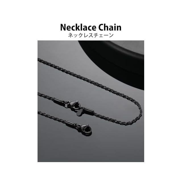 商品名:《新品未開封》[ChainsHouse] ネックレス レディース チェーンのみ ステンレス メンズ フレンチロープチェーン 黒 ブラック 70センチ 2ミリ アクセサリー