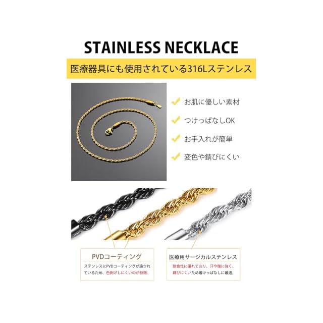商品名:《新品未開封》[ChainsHouse] ネックレス レディース チェーンのみ ステンレス メンズ フレンチロープチェーン ゴールド k18金 70センチ 2ミリ アクセサリー