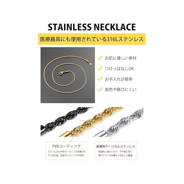 商品名:《新品未開封》[ChainsHouse] ネックレス レディース チェーンのみ ステンレス メンズ フレンチロープチェーン ゴールド k18金 45センチ 1.5ミリ アクセサリー