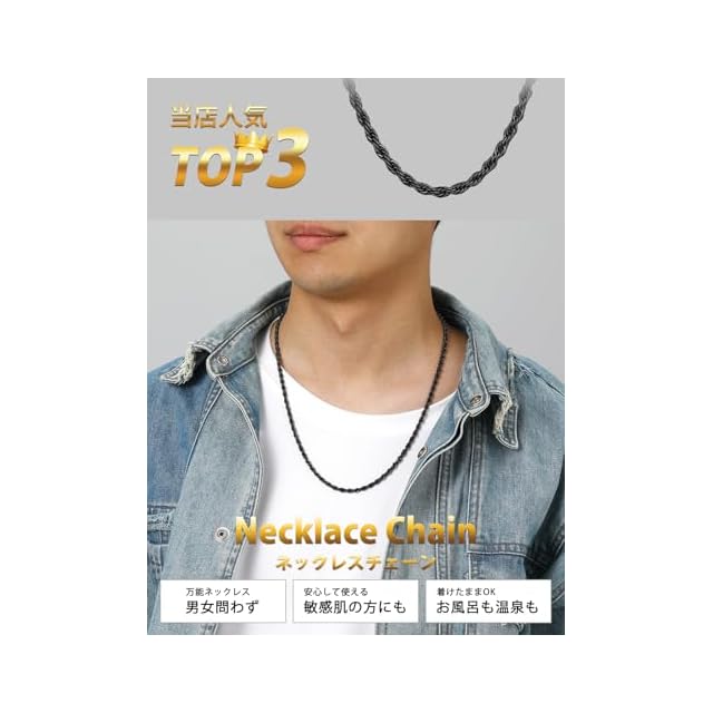 《新品未開封》[ChainsHouse] ネックレス メンズ チェーンのみ ステンレス フレンチロープチェーン 黒 ブラック 55センチ 3.8ミリ レディース アクセサリー