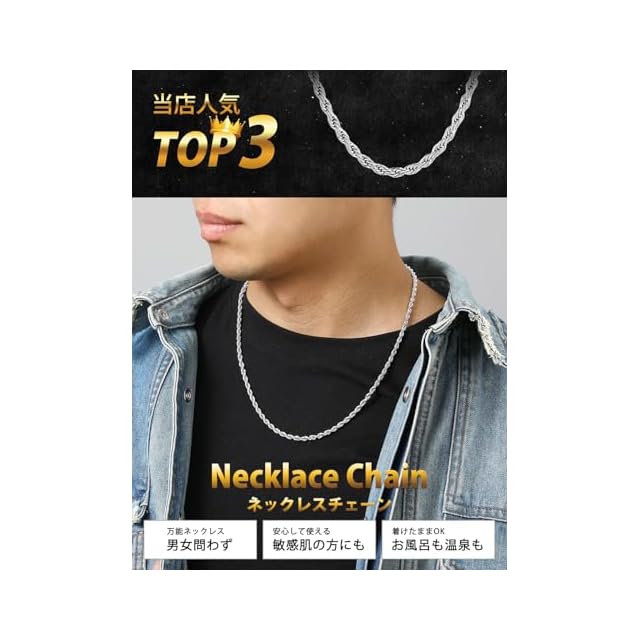 商品名:《新品未開封》[ChainsHouse] ネックレス メンズ チェーンのみ ステンレス ロープチェーン シルバー アレルギー対応 75センチ 3.8ミリ レディース アクセサリー