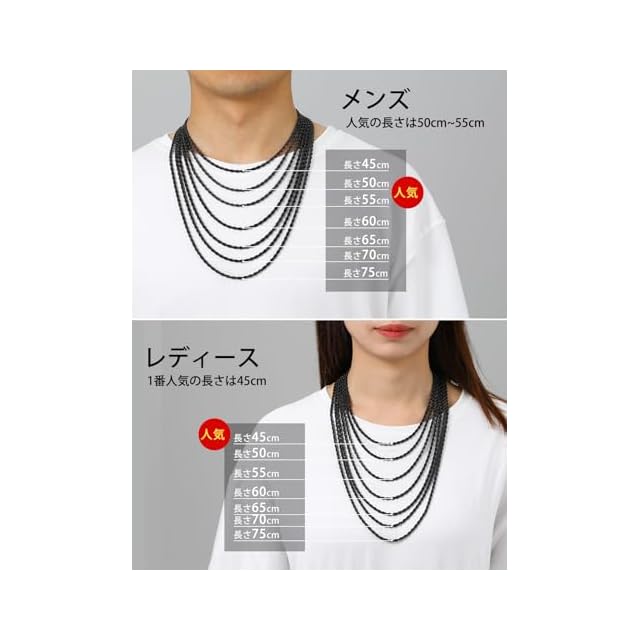 【色も!太さも!長さも選べる!】1.5mm、2mm、3mm、3.8mm、6mmの5太さ、シルバー、ゴールド、ブラックの3色、40cm、45cm、50cm、55cm、60cm、65cm、70cm、75cmの8長さ、全114種類を揃えました!