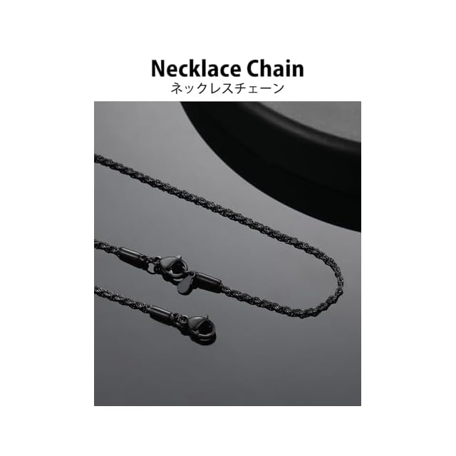 商品名:《新品未開封》[ChainsHouse] ネックレス レディース チェーンのみ ステンレス メンズ フレンチロープチェーン 黒 ブラック 40センチ 1.5ミリ アクセサリー