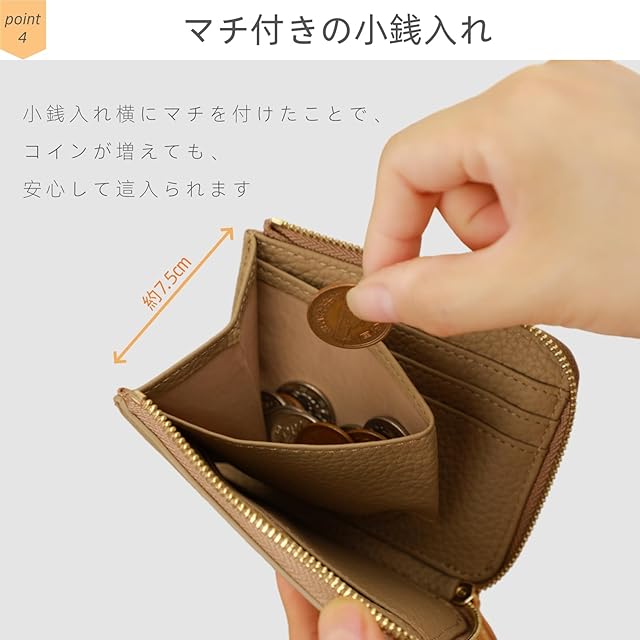 素材:本牛革 重量:約68g 寸法:11×9.5×2cm 開閉:L字型ファスナー 小銭入れ:1か所 カード収納:6か所 オープンポケット:1か所