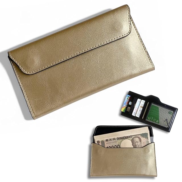《新品未開封》[nervousrhinos] 札束入れ 薄型 お札入れ ケース マグネットフラップ お札だけ入れる財布 メンズ レディース 本革 金色 通帳入れ 保管ケース gold