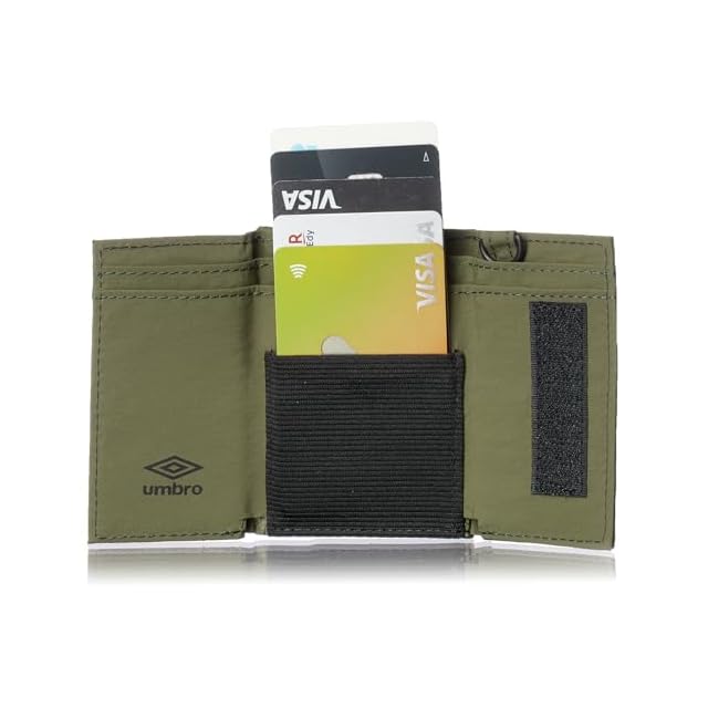 《新品未開封》[アンブロ] 三つ折り財布 メンズ レディース ネックストラップ付き 軽量ナイロン コンパクトウォレット ミニ財布 小銭入れ付き Khaki