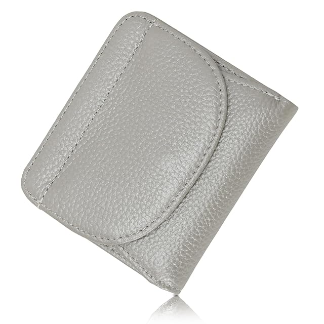 《新品未開封》[PURCHIC] 二つ折り財布 ミニ財布 レディース 本革 薄型 コンパクト 軽量 財布 小銭入れ スキミング防止 (シルバー)