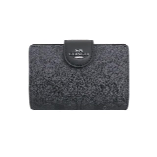 《新品未開封》[My Organyee] レディース 財布 通販 L型 ショルダー二つ折り財布 ミディアム コーナー ジップウォレット シグネチャー キャンバス アウトレット (チャコール×ブラック) [並行輸入品]