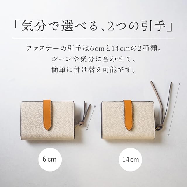 ✅【ずっと触れていたい美しいシボレザー】手触りの良い牛本革を贅沢に使いました。丈夫で傷が付きにくいので永く愛用していただけます。✅【気分で選べる、2つの引手】ファスナーの引手は14cmと6cmの2種類。シーンや気分に合わせて、簡単に付け替え可能です。