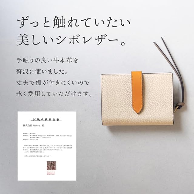 【商品説明】 LASIEMの大人気シリーズから、2つ折り財布が新登場。■「妥協なきこだわりの結晶」 全432万通りの組合せから厳選した配色が、上質さと大人の遊び心を演出。ベルトの幅や長さ、引手のデザインなど、細部までミリ単位で試作を繰り返し、ようやく完成したこだわりの結晶です。 ■「持つたびに気分が上がる、上品フォルム」無駄を省いたシンプルなフォルムに、さりげないベルトのアクセントが加わることで、上品で洗練された印象を演出。持つたびに、普段の日常が少し華やかに。 ■「ずっと触れていたい美しいシボレザー」手触りの良い牛本革を贅沢に使いました。丈夫で傷が付きにくいので永く愛用していただけます。 ■「気分で選べる、2つの引手」ファスナーの引手は14cmと6cmの2種類。シーンや気分に合わせて、簡単に付け替え可能です。 ■「小さいのに大容量」 カードポケットx8 小銭入れx1 カードポケットx1 お札入れx1 こんなに入りますカードx10枚 コインx20枚 お札x10枚 領収書など ■「取り出しやすい小銭入れ」あえて仕切りを付けていない設計。パッと一目で中身が見渡せます。 ■「スキミング防止機能」大切なカードの情報を外部から守ります。 【製品仕様】 ●サイズ 縦:約12.5cm 横:約9cm 厚さ:約3cm ●重量 約105g ●素材 牛本革 合成皮革(ベルト部分のみ) ファスナーカラー:ゴールド