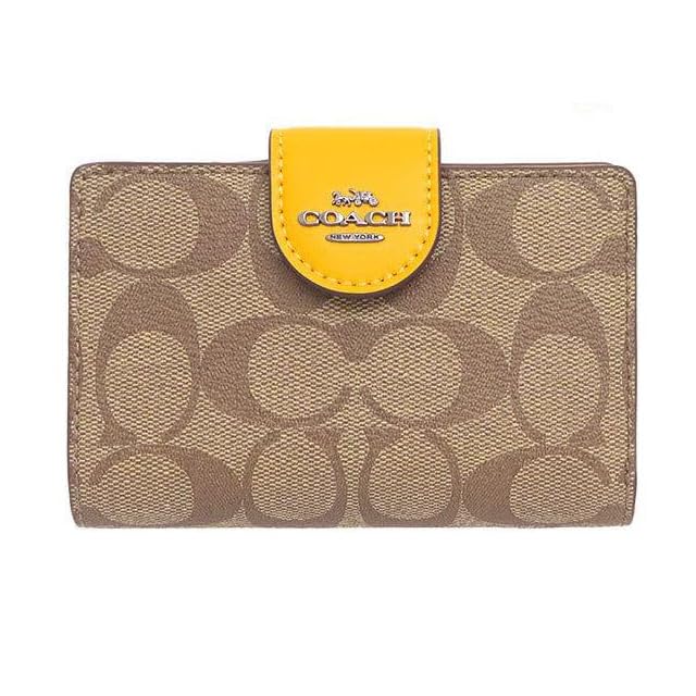 《新品未開封》[SOO] 二つ折り財布 シグネチャー アウトレット品 収納 多い レディース シンプル ブランド PVC レザー (カーキ×イエロー) [並行輸入品]