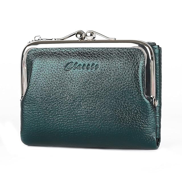 《新品未開封》[imeetu] がま口財布 本革 レディース 二つ折り財布 旅行財布 大容量 柔らかい 小銭入れ付き 牛本革 軽量 多機能 コンパクト カジュアル (箔レザー ダックグリーン)