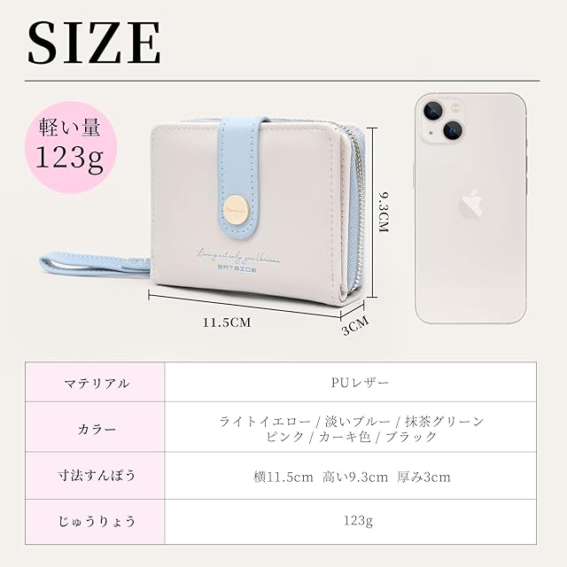 『商品仕様』○ブランド:Weryer ○サイズ:長さ12cm、高い9.3cm、厚い3cm。○重さ:約0.1KG ○カラー:ブルー、イエロー、グリーン、ブラウン、ブラック、ピンク ○仕様:財布 レディース 、ミニ財布 、小さい財布、2つ折り財布。