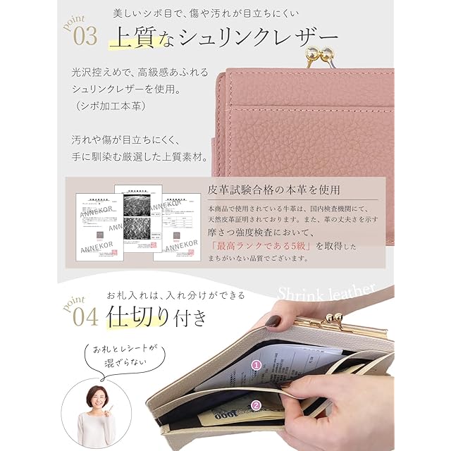 ✅【上質本革のがま口ミニ財布】 高見えするシュリンクレザーを使用した本革がま口財布。傷や汚れが目立ちにくく、PUレザーにはない上質感と耐久性で長く愛用いただけます。小さめ・軽量ながらも実用性に優れた、二つ折り財布です。