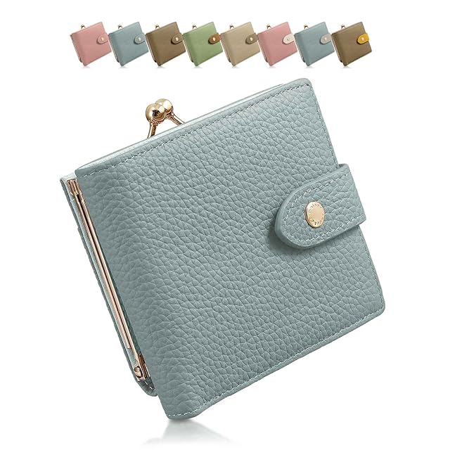 《新品未開封》Annekor がま口 財布 本革 【うれしい時短設計】レディース ミニ財布 二つ折り財布 小銭入れ 小さい 軽量 スキミング防止 RFID ギフト [アンコール] (アイスブルー/単色)
