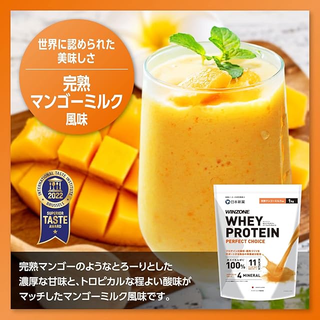 《新品未開封》日本新薬 WINZONE(ウィンゾーン)ホエイ プロテイン パーフェクトチョイス 3kg 完熟マンゴーミルク風味 whey protein 100 国内製造 11種ビタミン 4種ミネラル WPC