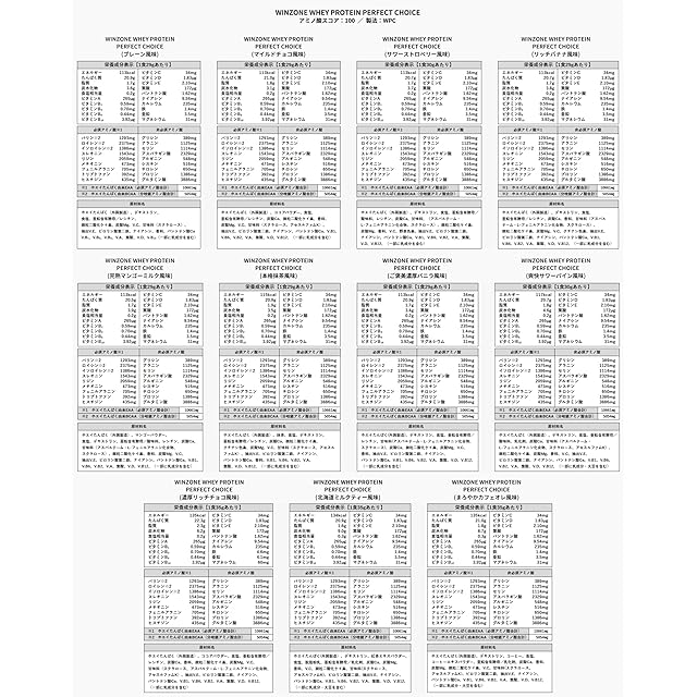 ✅【たんぱく質 約21gとビタミン11種、ミネラル4種配合のオールインワン!】効率的なカラダづくりを行うには、たん白質だけでなく十分な量のビタミンとミネラルも必要です。ビタミンやミネラルは、たん白質の吸収や合成に関与したり、日々の体調維持をサポートしたりと、健康的な身体づくりには欠かせません。WINZONEプロテインは【1/3日分】のビタミン【11種】と、ミネラル【4種】を配合したオールインワンプロテインです。<食品換算時の目安量(プレーン風味1食分)> ビタミンA/ほうれん草生3株、ビタミンB1/卵15個、ビタミンB2/焼きのり10枚、ビタミンB6/ひよこ豆244g、ビタミンB12/生紅鮭0.5切れ、ビタミンC/レモン0.3個、ビタミンD/きくらげ10個、ビタミンE/アーモンド7粒、葉酸/乾燥椎茸12.7個、ナイアシン/とりささみ生56g、パントテン酸/トマト4.7個、カルシウム/牛乳260ml、鉄/牛レバー生35g、マグネシウム/あさり6匹、亜鉛/生牡蠣1.5個 *食品成分データベース参照